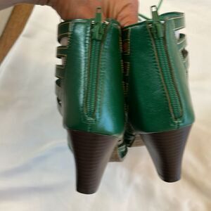 RASOLLI GREEN LACE UP CUT OUT SHOOTIES. ZIP UP BACK. NEW IN BOX