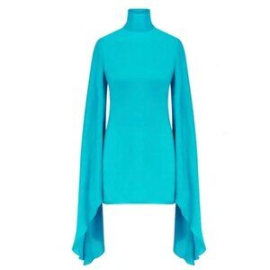 Effortlessly chic with a nostalgic, 70s-inspired feel, the Farrah dress is a flawless mini made to hold its own after dark. Crafted from luxe, figure-skimming satin in a sophisticated shade of blue and cut to a strong, dramatic silhouette, it has an elegantly high neck and extra long, exaggerated cuffs that enhance the fluidity of this style.