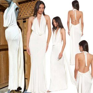 🆕 RAT & BOA 🧿 NWOT Winona White Slinky Cowl Neck Jersey Gown, Sz S