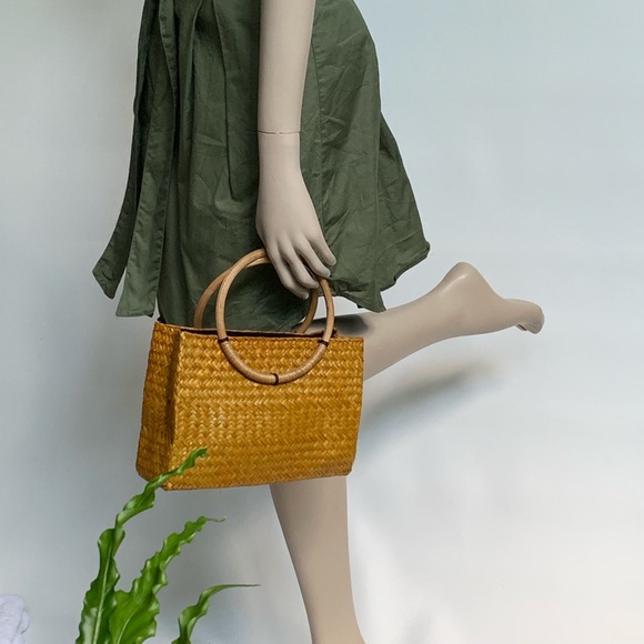 ON TREND RATTAN BAG WITH BAMBOO HANDLES