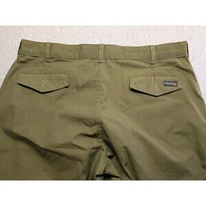The RATTLERS Brand Pants in size 42X29 are a stylish and functional addition to any outdoor enthusiast's wardrobe. Made in the USA with a durable cotton-nylon blend, these hunting pants feature nylon brush guards on the legs to protect against abrasions and thorns. With a mid-rise fit and straight leg style, these pants offer both comfort and practicality for any season. The green color and solid pattern make them versatile for various occasions, from casual outings to workwear or outdoor adventures. Perfect for those who appreciate quality and classic American style.
