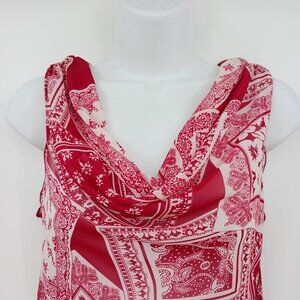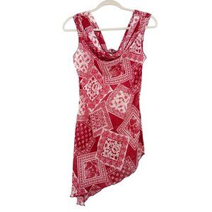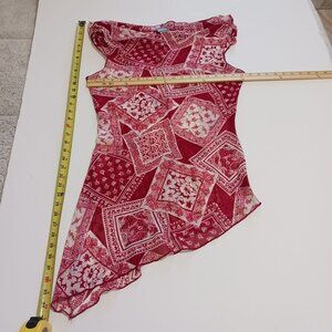 RAVE Y2K Red White Bandana Print Asymmetrical Hem Sheer Top