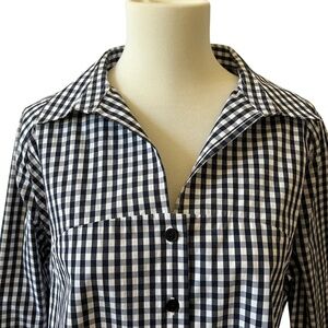 Womens size Medium, black and white gingham check, classic, cotton, blend, button front.