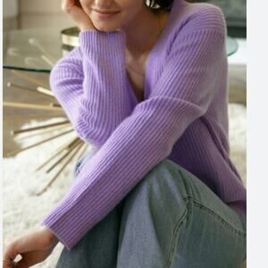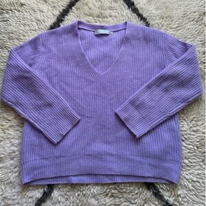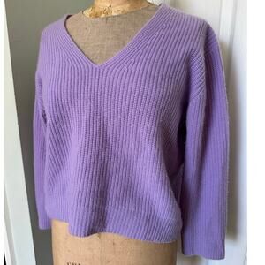 RAVELLA 100% PURE CASHMERE V NECK PULLOVER SWEATER LAVENDER PURPLE FISHERMAN XS