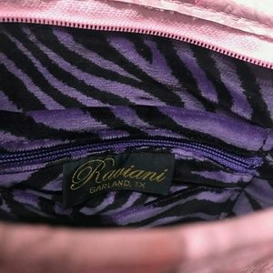 Brand new, never used pink alligator print purse with a cross made from metal accents and rhinestones. The purse is on the smaller side and has a purple zebra print on the inside. As well as this, on the inside is two pockets - one with a zipper and one without a zipper. Feel free to make an offer!