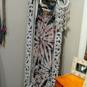 beautiful tie dye black and pink. low open back. midi and length. excellent condition adjustable straps