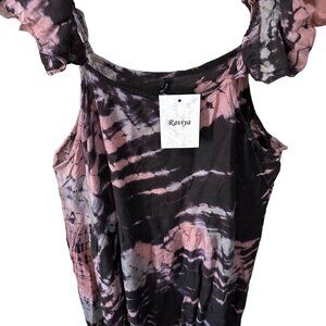 RAVIYA Women Size 0X Black Tie Dye Off Shoulder Dress Swim Cover Up NWT