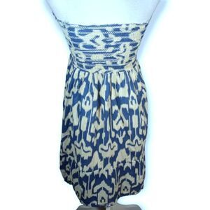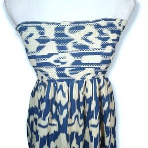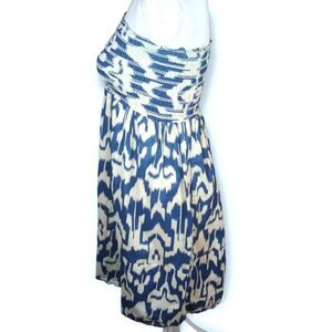 RAVIYA BLUE & CREAM SMOCKED STRAPLESS DRESS SZ.M EUC