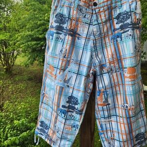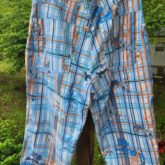 men's size 32 waist 32 length with draw strings on the legs animal print