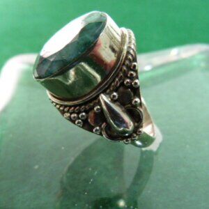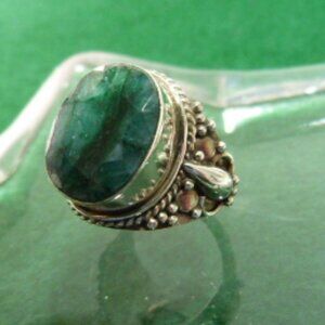BEAUTIFUL GREEN EMERALD IN A STERLING SILVER MOUNTING