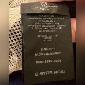 RAW G-Star Rackam DC men's blue camo bomber jacket in medium. Deconstructed bomber jacket made from lightweight chambray with great breathability. Functional sleeve pocket. Excellent preowned condition. There is some minor wear on the black metal logo on the sleeve. See photos for details. Fully mesh lined. 100% polyester.