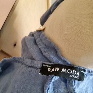 RAW MODA Italian Design Pure Linen Spring Blue Babydoll Loose Top M/L Bohemian