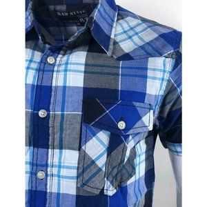 RAW STATE AFFLICTION Men's Button Down Shirt Short Sleeve Outwear Blue