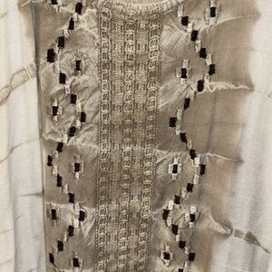 Brown threading design down front of dress