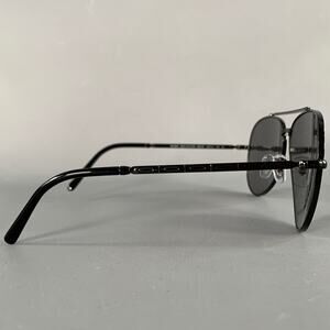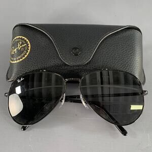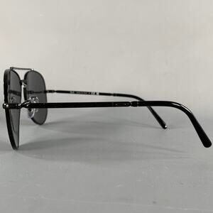 RAY-BAN "New Aviator" sunglasses in a black metal featuring an aviator style and tinted lenses. Comes with case. Made in Italy.