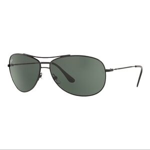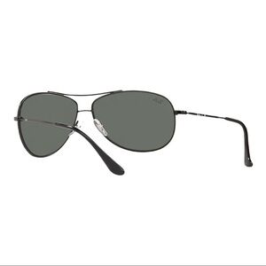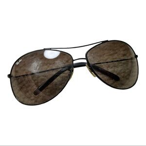 RayBan black metal aviator sunglasses with case. Glasses were used May have some minor/superficial flaws including light scratches to lens. Comes with cleaning cloth. Regular fit.