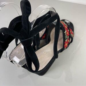 RAYE Black Suede Floral Embroidered Wrap Around Heeled Sandals in size 8.5 Women's