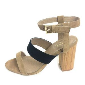 Elevate your style with these RAYE heels, featuring a chic brown suede finish and a comfortable block heel. The minimalist design includes sleek straps across the toes and an adjustable ankle strap for a secure fit. Perfect for both casual outings and semi-formal events, these heels offer a blend of elegance and comfort.