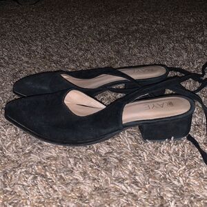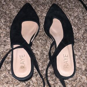 RAYE black lace-up mules w/ 1” heel, size 5.5