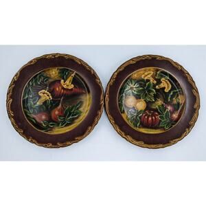 RAYMOND WAITES TOYO Decorative Fruit and Vegetable Plate 10-1/4" Set of 2