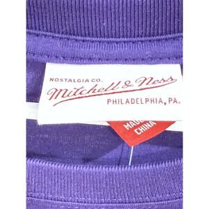 The product is a men's size 2XL purple Toronto Raptors shirt from Mitchell & Ness. It features an official NBA design with a premium pocket detail. The shirt is ideal for basketball fans looking to support their team in style.