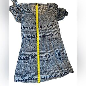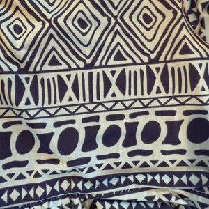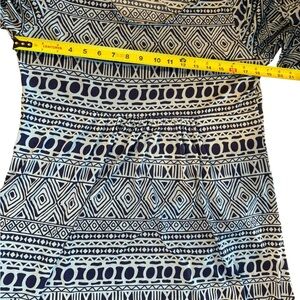 Stylish dress with a geometric pattern. Features a scoop neckline and three-quarter sleeves. Very versatile dress that seems to be impossible to wrinkle. I changed this to size large for size, she is tagged Xl but see the measurements. The model is 5 foot 4 and weighs 135 pounds, so unless you are looking for a bodycon dress, this is not XL.