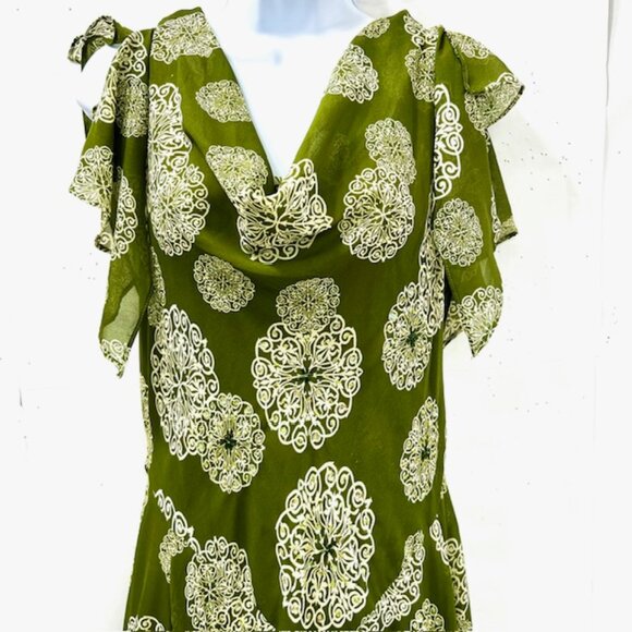 22 RB Collection New York dress , casual or beach wear sheer polyester green olive floral , line v-neck,
