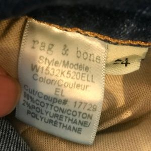 Great condition RB high rise skinny jean with zip fly and button closure. Large rip/distress on one leg & frayed edges at leg openings. Approx 27.5” inseam. Please ask any questions!