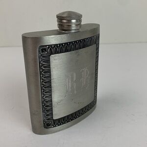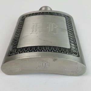 The initials RB engraved on this Pewter flask. 90s vintage with a deco style detail, nice weight too! Great gift for someone with matching initials !