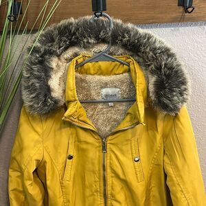 RB22 Holstark mustard, yellow, faux fur lining, full zip up coat size large