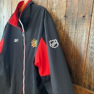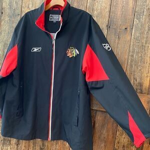 RBK Sz L Black Red Chicago Indian Logo Blackhawks Hockey Windbreaker Jacket