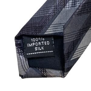 RBM Collection Neck Tie 60x4 Silk Imported Black Silver Blue Geometric New