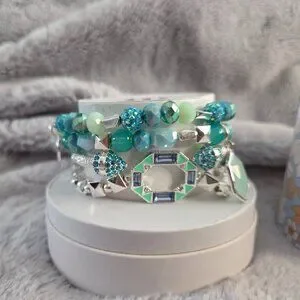 Ring Bomb Party ‘Atlantis Found’ Spring 2024 Bracelet Stack. A luminous blend of sea‑glass blues, iridescent shimmer, and ocean‑inspired accents that capture the magic of underwater treasure. This curated stack layers effortlessly with stretch‑fit comfort and adds a refreshing, coastal sparkle to any look. Excellent condition with vibrant color and shine