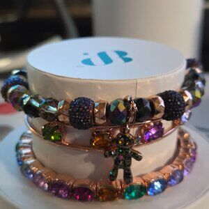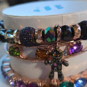 RAINBOW ARRAY OF STONES ON ROSE GOLD WITH VOODOO DOLL CHARM.