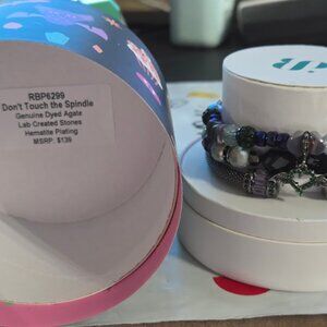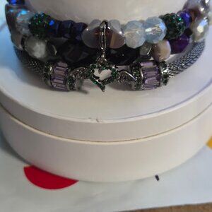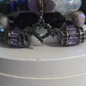 3 BRACELET STACK GENUINE DYED AGATE ON HEMATITE PLATING. BAT CHARM
