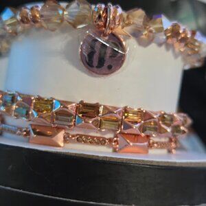 LAB CREATED STONES, ROSE GOLD PLATING. 3 BRACELETS IN THE SET.