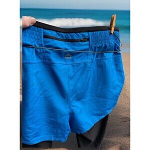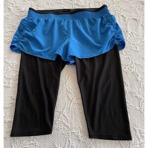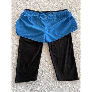 RBX 2-In-1 Shorts w Capri Leggings Zip Pocket Yoga Black w Blue Ladies XL