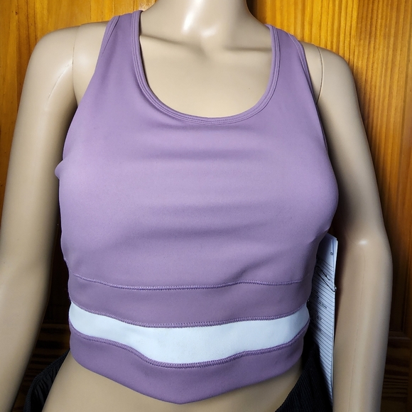 Has a tiny pen Mark Brand new Never worn Season:Spring 2022 Missy sport BRA 85 polyester 15 spandex Removable Demi cups Printed interlock BRA with mesh.