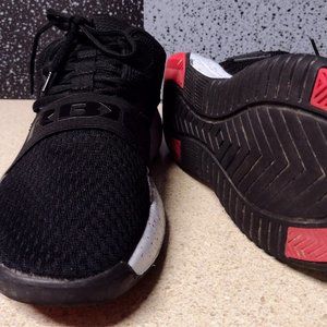 RBX Men's Active Black Red/White Running sneakers size 11. Speckled sole knit mesh sneakers are pre-owned with some wear as shown.