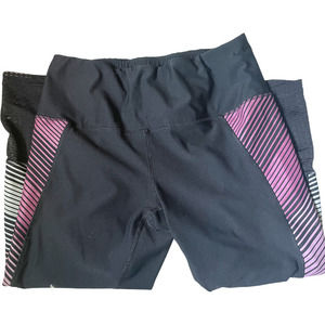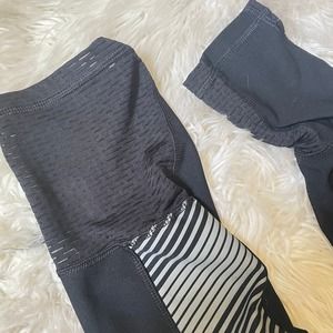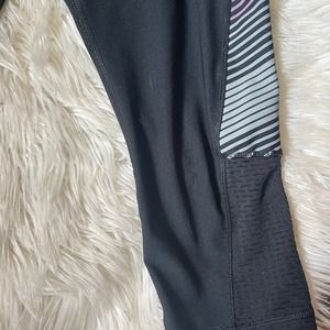 RBX Black High Rise Ombre Striped Cropped Leggings. Black cropped leggings with an ombre striped detail down the side. Mesh on the bottom portion on the leg. Excellent condition.