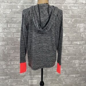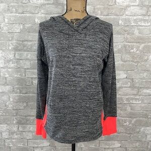 RBX long sleeve hooded shirt PTP MEASUREMENT- 23” Thumb holes Front pockets Bright orange accents K23