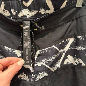 RBX Black and White Patterned Gym Shorts Men Size L Built in Liner