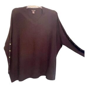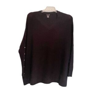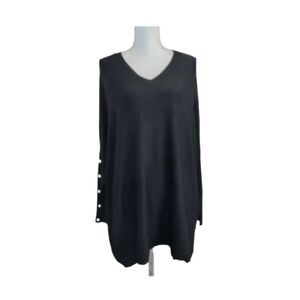 RBX Button Detail Dolman Sleeve Tunic Sweater Black Knit V-Neck Long Sleeve M
