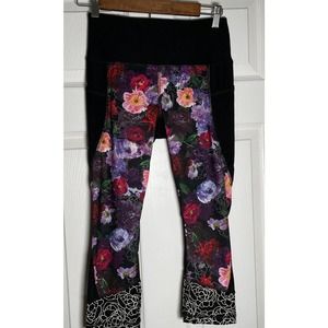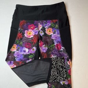 RBX Floral Black Legging Capri Mid Ride Vented Mesh S Small Workout Yoga Running