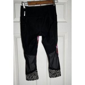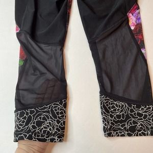 RBX Floral Black Legging Capri Mid Ride Vented Mesh S Small Workout Yoga Running.