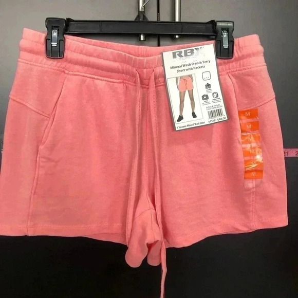 RBX Mineral Wash French Terry Shorts,elastic drawstring waist,hip pockets,Coral
