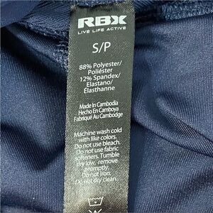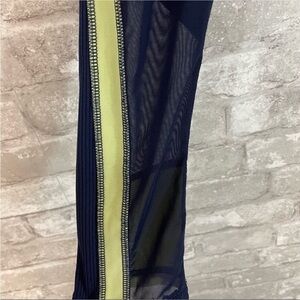 Stylish RBX leggings. Navy with lime accents. Perfect for workouts. Inseam- 21" Rise- 9" Mesh panels on lower leg