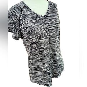 RBX Space Dye style black/gray/white v neck short sleeved top size L.