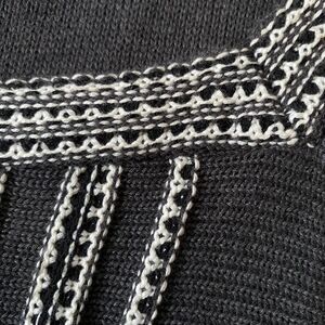 RBX Tie Front Sweater Women's Size L Dark Gray White Fluted Ribbed Knit Sleeves