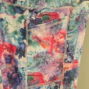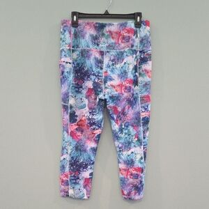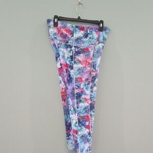 RBX Woman's Blue and Pink Floral Watercolor Leggings High Waist Stretch